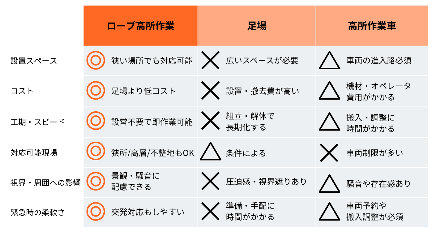足場・高所作業車との比較
